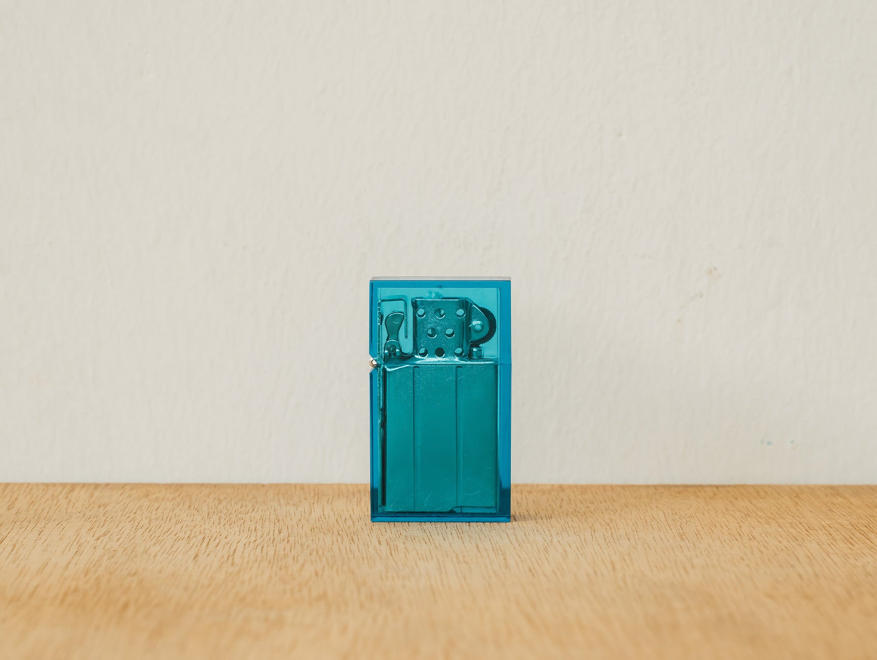 Discover the Hard Edge Lighter in Clear Blue, a masterpiece of Japanese design by Tsubota Pearl. This Zippo-style lighter combines a semi-transparent matte polycarbonate shell with a robust steel interior and a reliable cotton wick. Ideal for collectors and enthusiasts who value minimalist Japanese aesthetics.