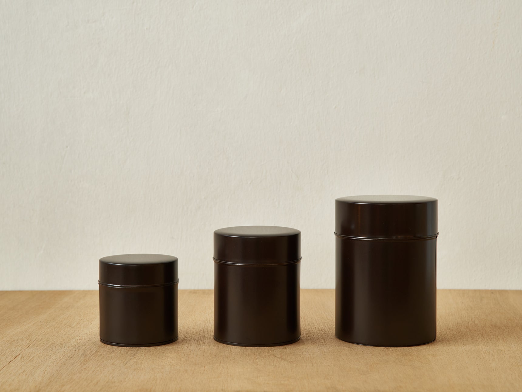 Established in 1899, Kato Seisakusho crafts premium tin caddies ideal for storing tea, coffee, and snacks. Each airtight container features a three-part design for maximum freshness. Made from durable tin with a heat-cured finish, these caddies resist wear and come in three sizes (150g, 225g, 480g) and colors: Taupe, Mahogany, and Poinsettia. Includes a DIY custom label for personalization. Dimensions: S (Ø8.5 x H9 cm), M (Ø9.5 x H12 cm), L (Ø11.1 x H15.6 cm).