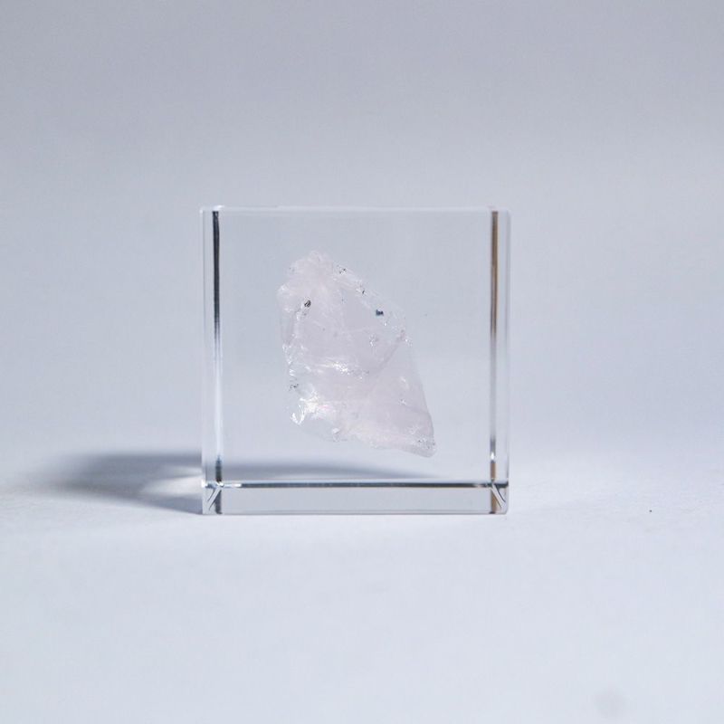 Discover the Sola Cube – Rose Quartz, a handcrafted acrylic resin cube from Kyoto that encapsulates natural beauty. Each piece features a real preserved leaf, seed, or flower, offering a meditative connection to nature. Made with high-quality acrylic resin and minerals, these cubes are perfect for collectors and design enthusiasts. Dimensions: 4x4x4 cm. Avoid direct sunlight and high temperatures to preserve quality.