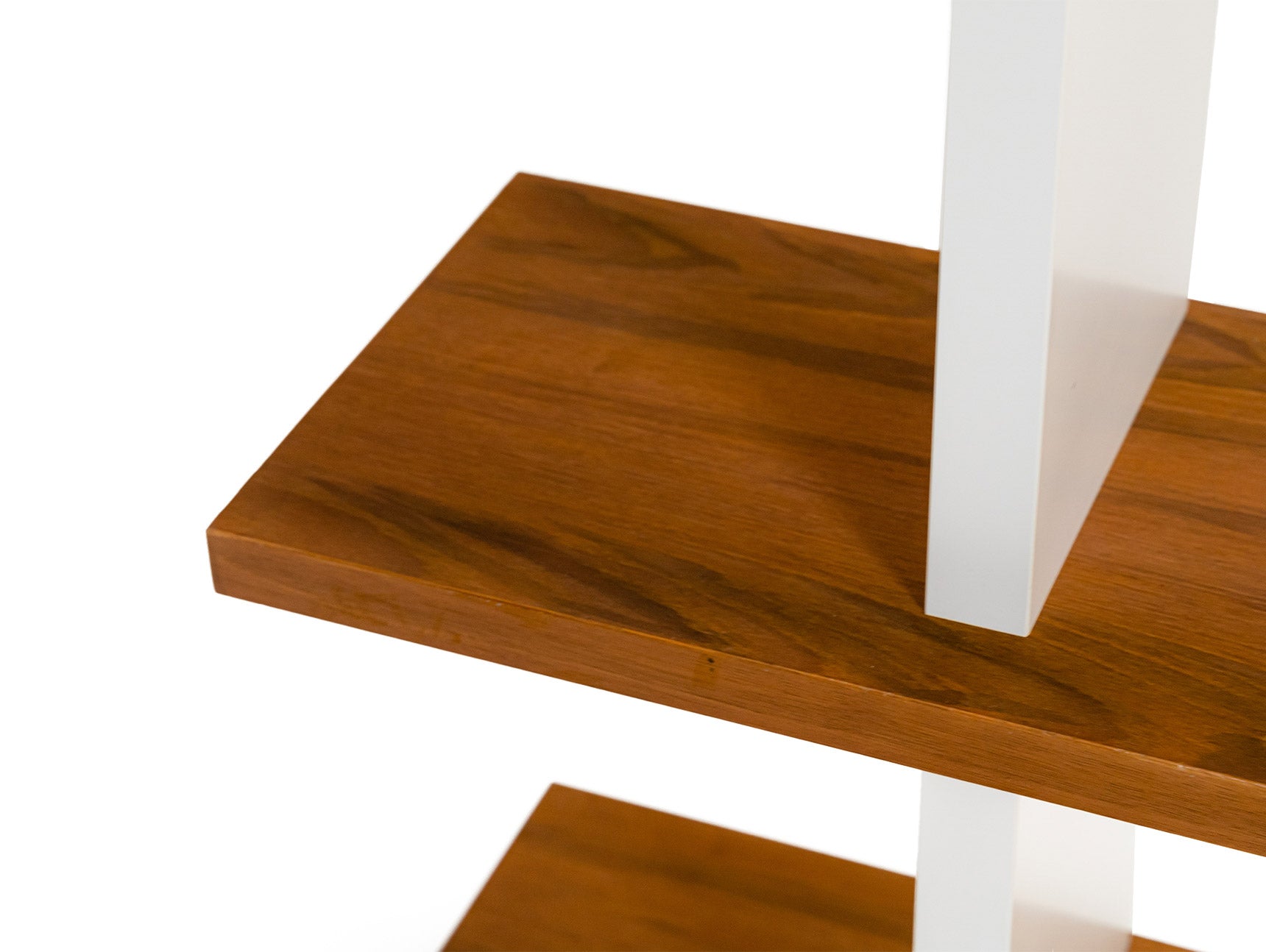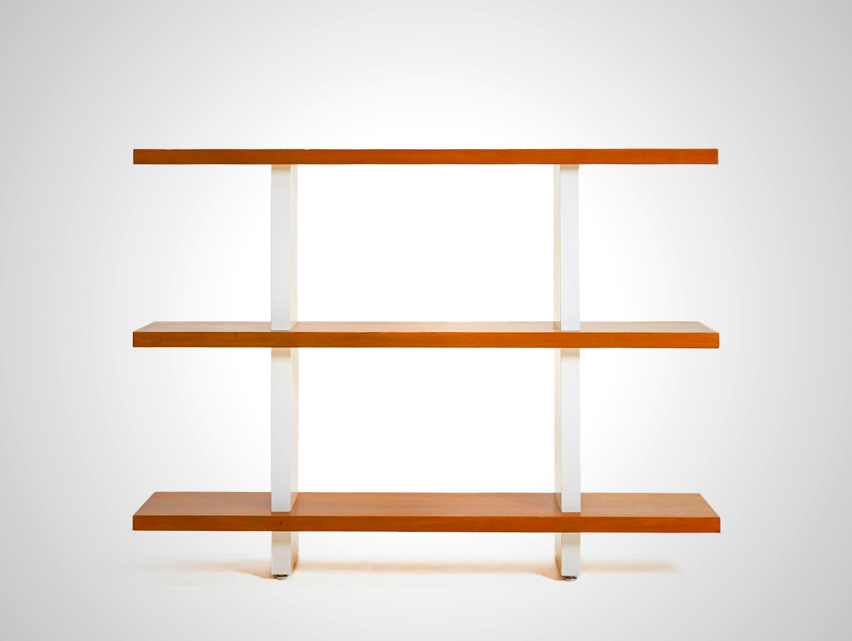 A lightweight yet sturdy shelving unit that strikes a quiet balance between form and function. Its design features pure white vertical veneers that contrast gently with a rich walnut horizontal surface, offering a warm, refined look with subtle character. The piece stands beautifully on its own as a standalone shelf or can be paired seamlessly with a console or sideboard for additional utility. Cantilevered shelves on either side add a sense of openness and visual lightness, making it an ideal choice for those who appreciate a clean, airy aesthetic without sacrificing practicality.